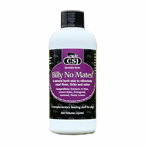 CSJ's Billy No Mates! for dogs is a totally natural mix in an 'easy-to-use' tincture form that is absolutely HATED by ticks, fleas and mites.